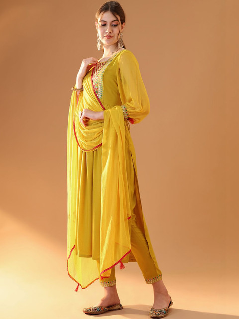 Green embroidered Kurta with Trousers with dupatta