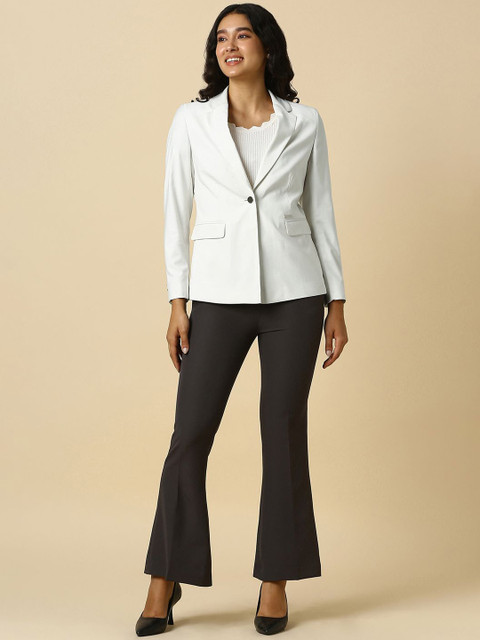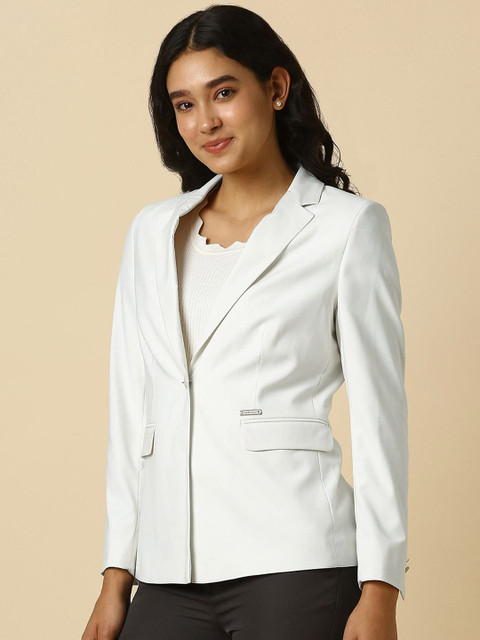 White solid regular-fit blazer, has a notched lapel, long sleeves, single-breasted with double button closure, two flap pockets and a single-vented back hem