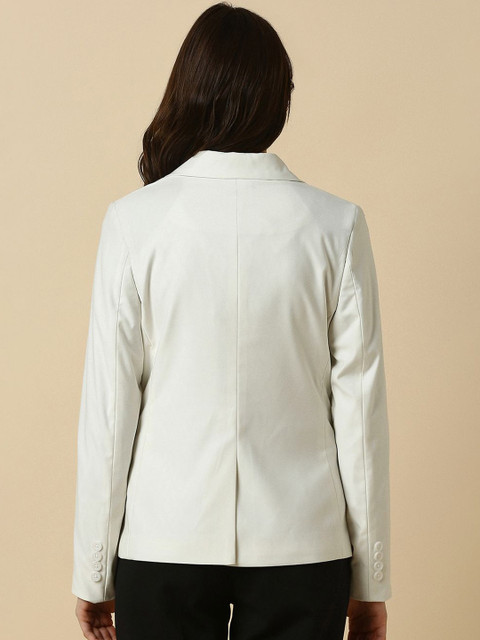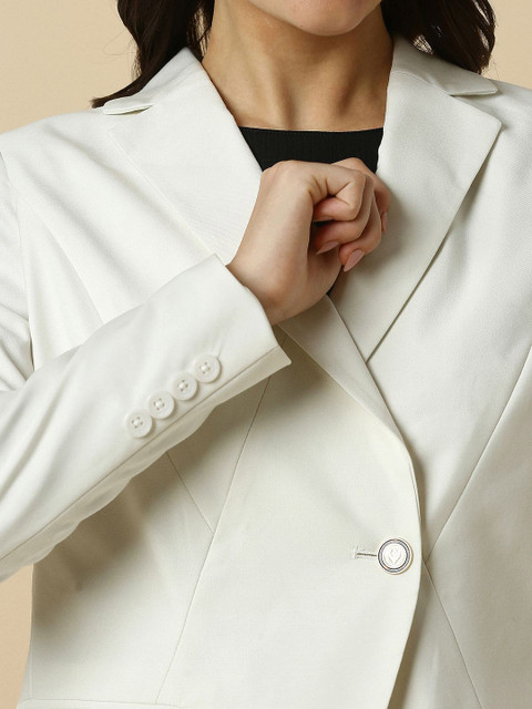 White solid regular-fit blazer, has a notched lapel, long sleeves, single-breasted with single button closure, two flap pockets