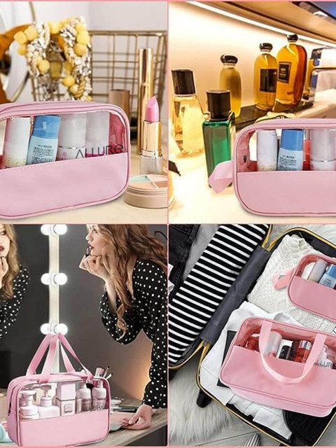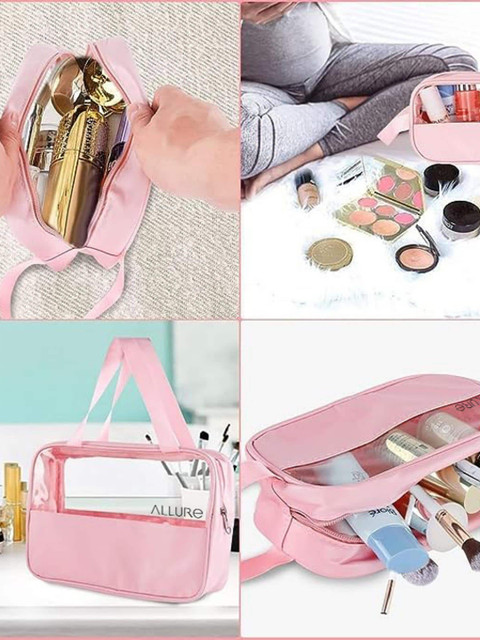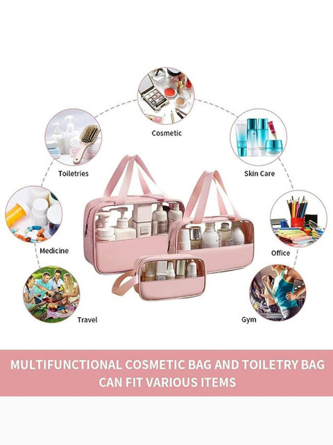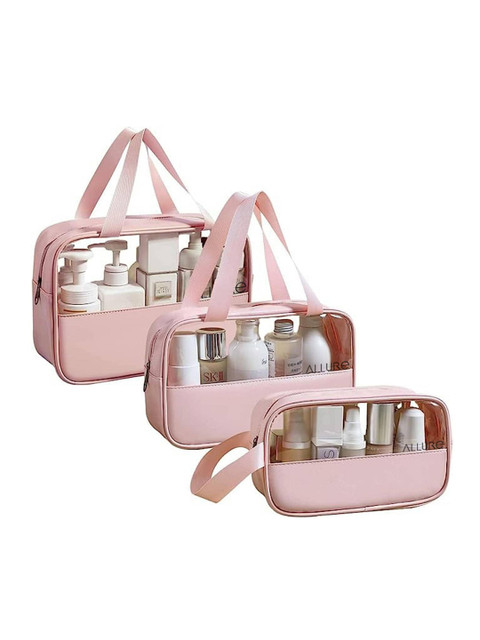 Set of 3 Pink solid travel pouch