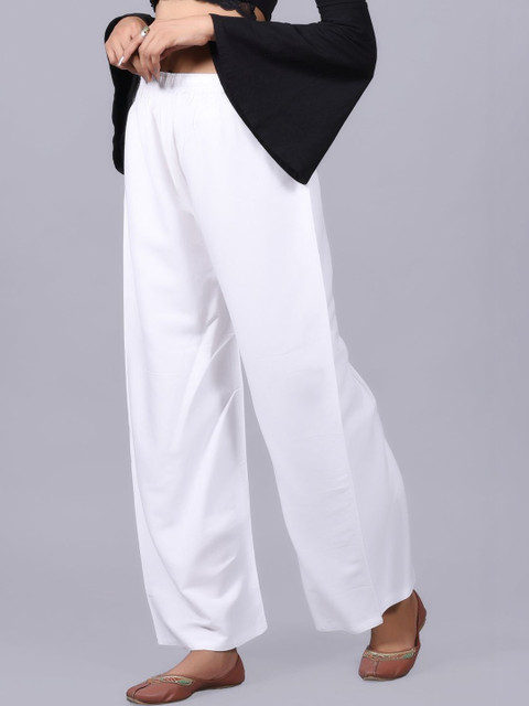 - White and white knitted palazzos