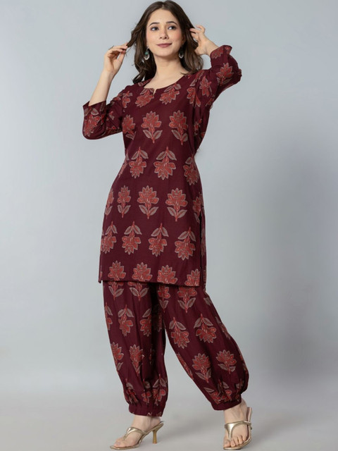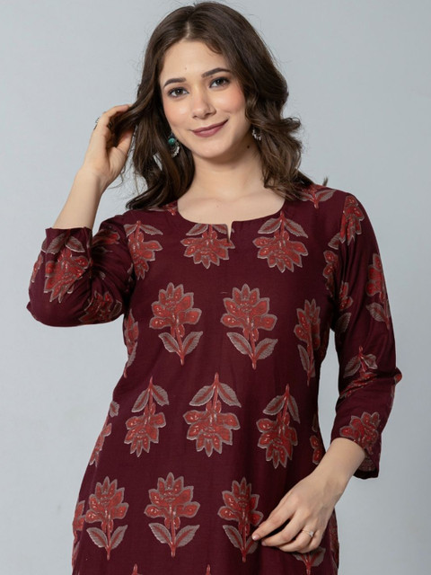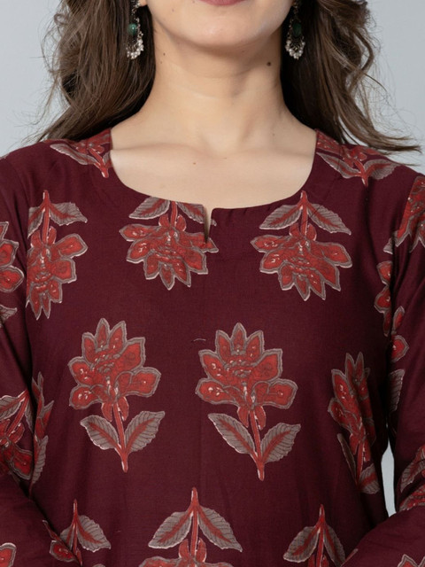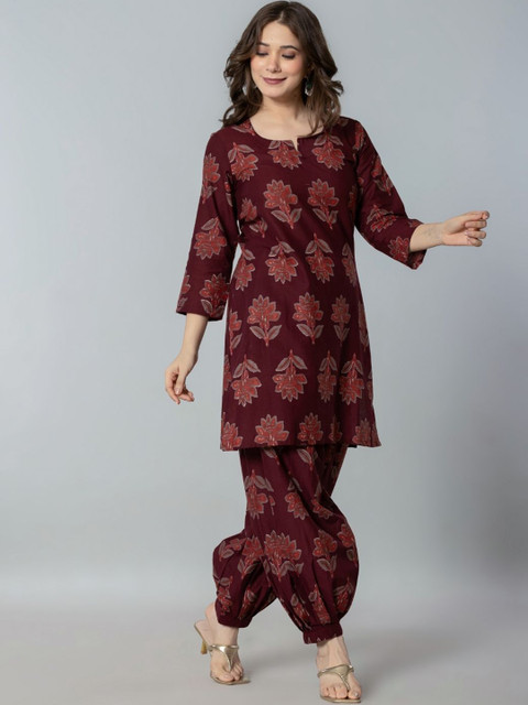 3 reviews for Amayra Floral Printed Notch Neck Pure Cotton Straight Kurta With Afghani Salwar
