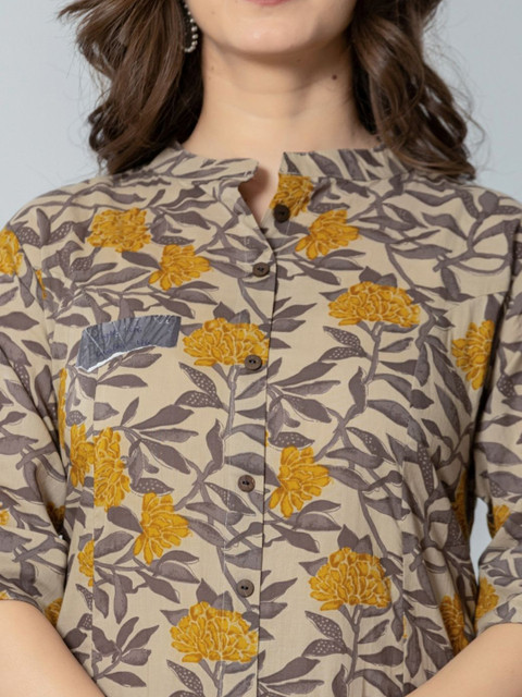 You’ll love the elegant design and fit of this stunning A-Line kurta with Pant from Rytras. Sport this Mustard piece with studded flats and minimal jewellery for a simple yet stunning evening ensemble.