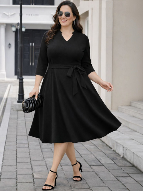 - Black and Black Solid Fit & Flare dresses