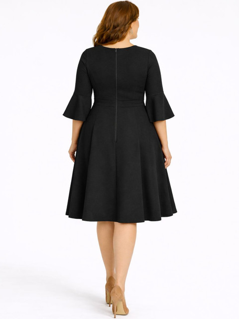 - Knee Length length in Flared hem