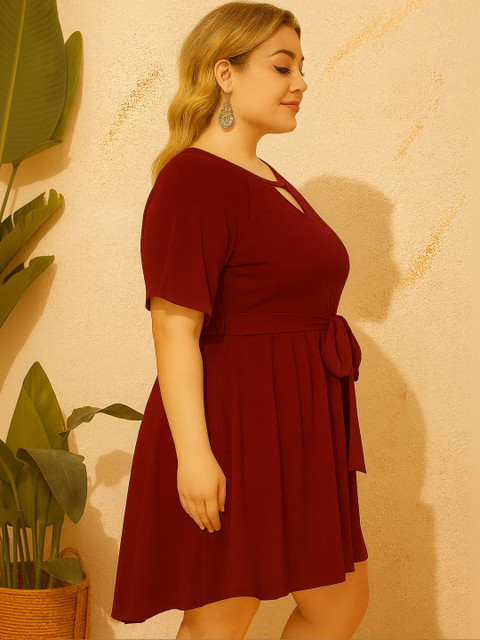 • Maroon and Maroon Solid Fit & Flare dresses