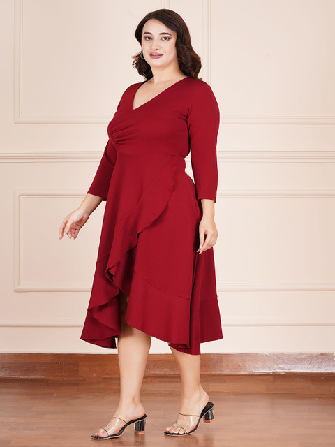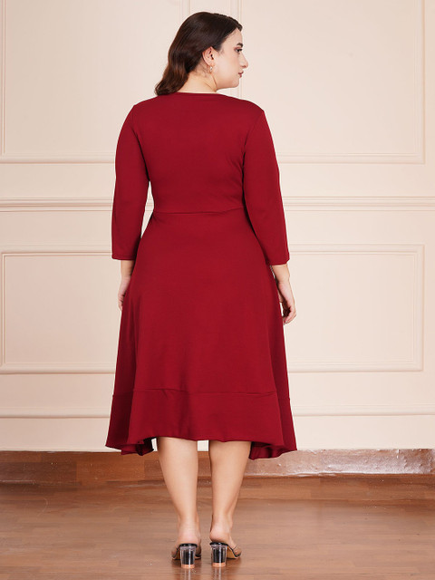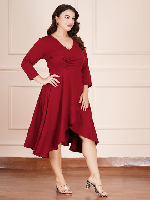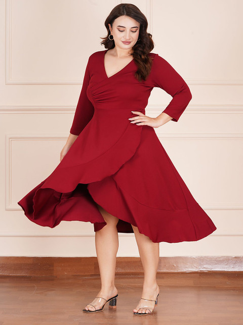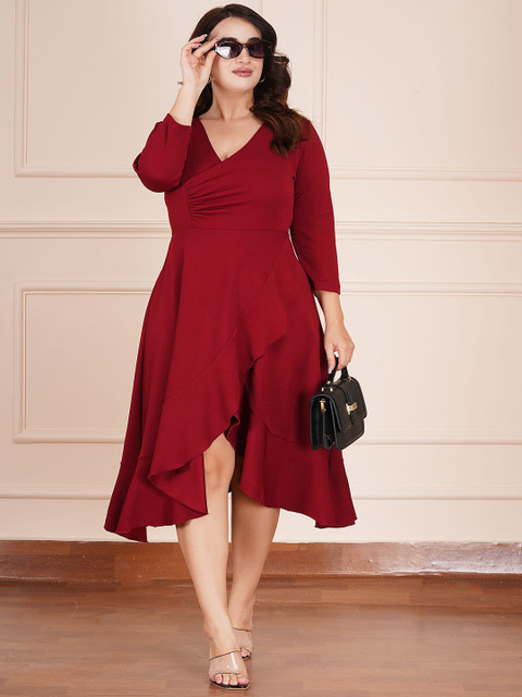 - Red solid wrap dress
