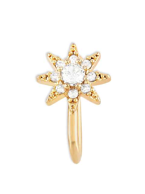 Gold-toned & white cubic circonia-studded stud nose pin with textured detail