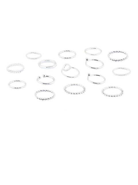 Set of 15 midi finger rings