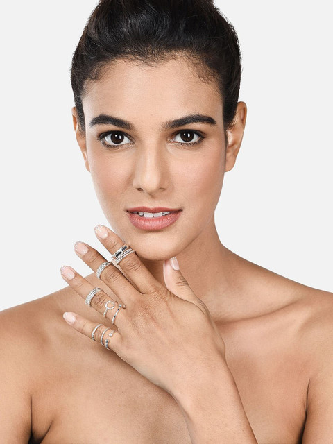 Silver-plated adjustable midi finger ring, has intricate textured details