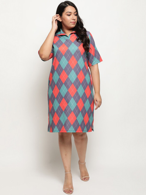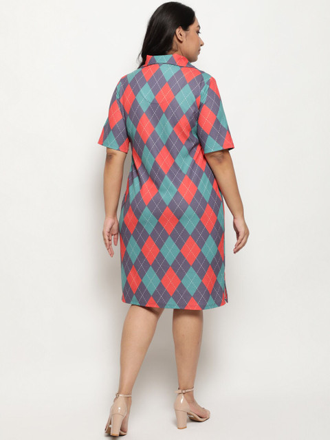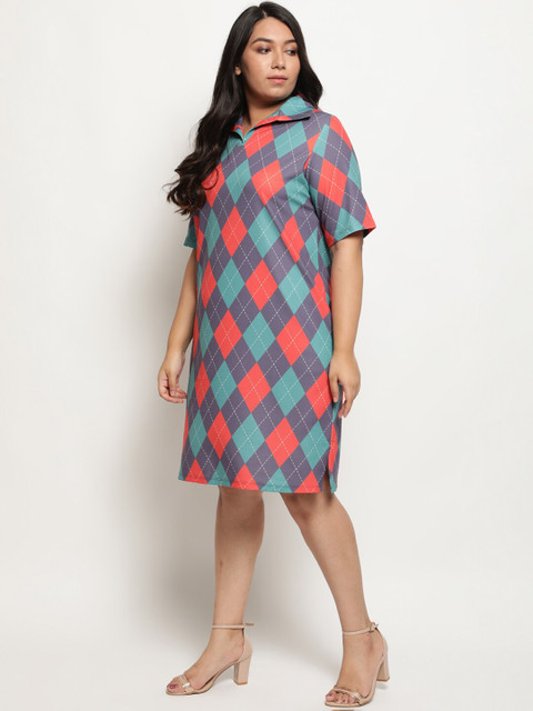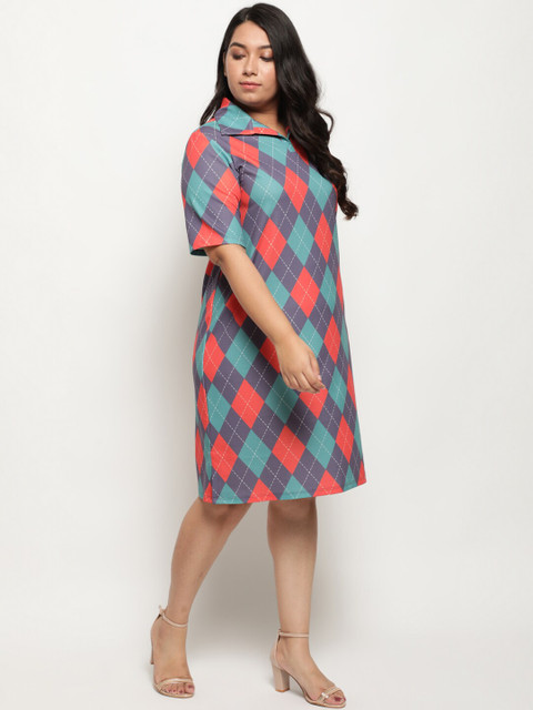 - Blue and purple sage checked a-line dress