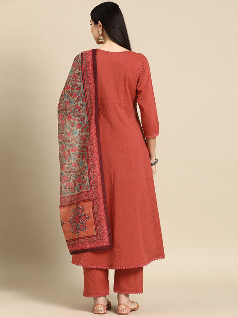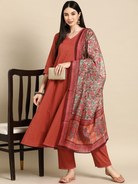 Absolutely loved this elegant Anarkali from Anayna! The black & orange geometric design looks vibrant, and the pure cotton fabric feels super soft and breathable. The flared Anarkali style with V-neck gives a graceful touch, while the solid trousers and silk-blend dupatta complete the look beautifully.