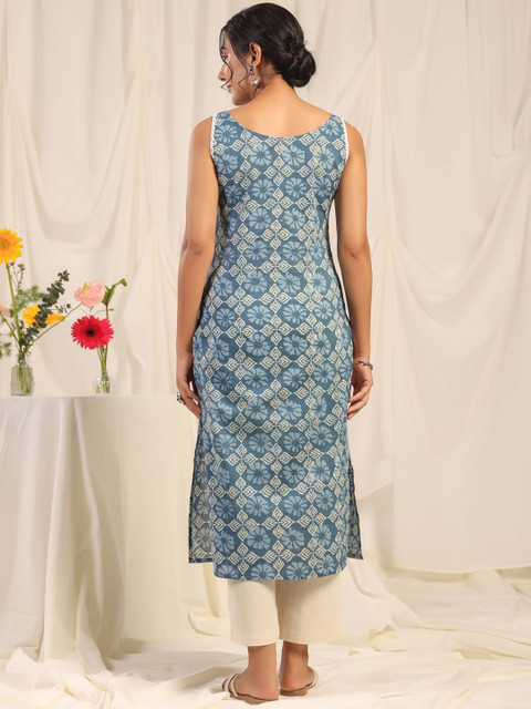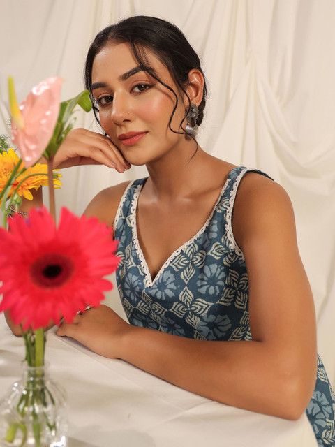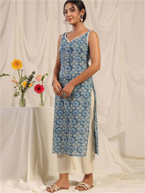 The fit, the lenth of kurti is perfect, sleeveless is perfect for this kurti, low front neck gives you gorgeous look for this kurti but it doesn’t looks awkward or not showing cleavage. Also color combination is the perfect and best.