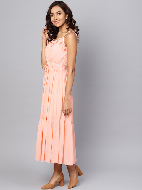 This dress from anayna is both durable and stylish, making it a must-have item. When you’re going to an art gallery opening or the theater, wear this solid peach piece with platform heels and a trendy clutch.