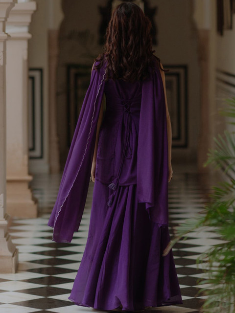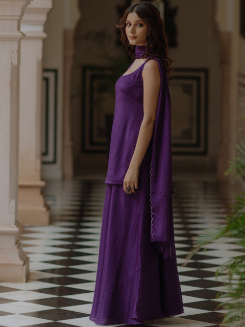 Purple solid Kurta with Skirt with dupatta