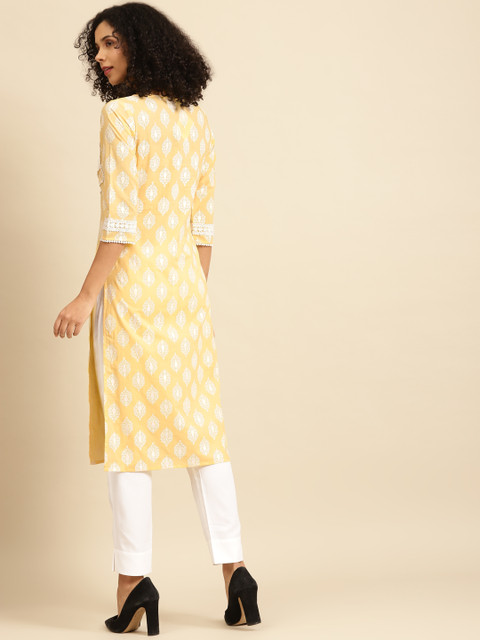 Wear this beautiful kurti on my birthday. Best for summer wear. Slightly transparent so need to carry camisole. I love this kurti because this is not typical yellow it is lemon yellow and this colour compliments my skin colour more.