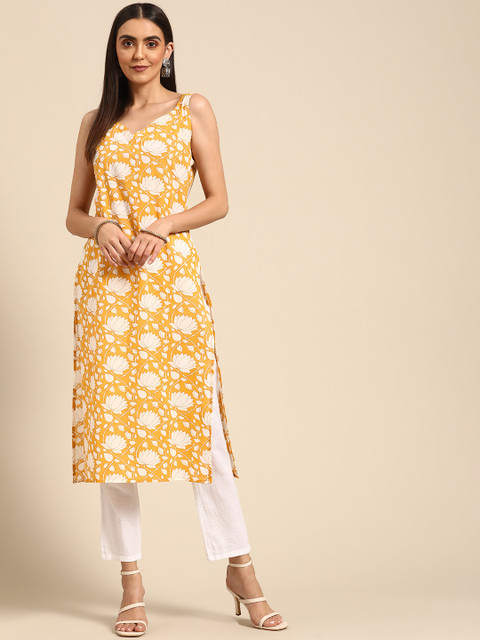 The fit, the lenth of kurti is perfect, sleeveless is perfect for this kurti, low front neck gives you gorgeous look for this kurti but it doesn’t looks awkward or not showing cleavage. Also color combination is the perfect and best.