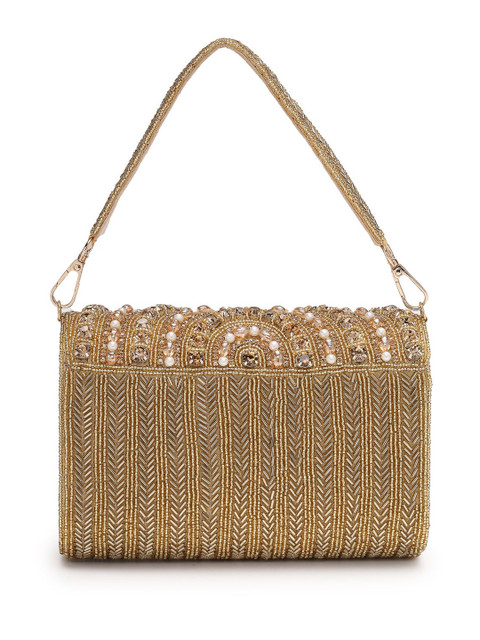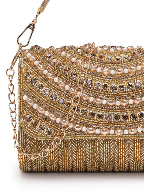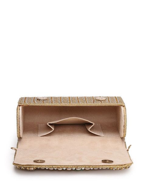 Antique Gold & Champange embellished embroidered envelope clutches