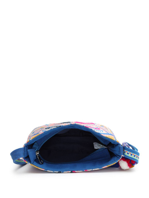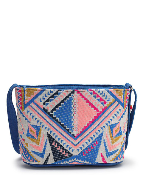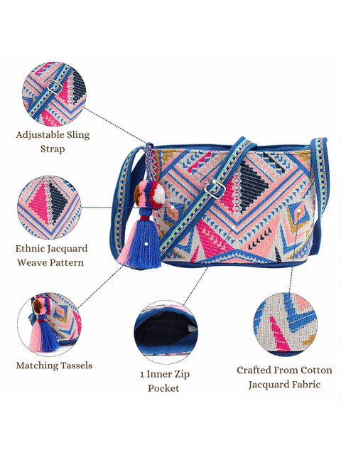 Cobalt Blue & Multi-Ethnic Jacquard Boho Sling Bag with Tasselled Detail