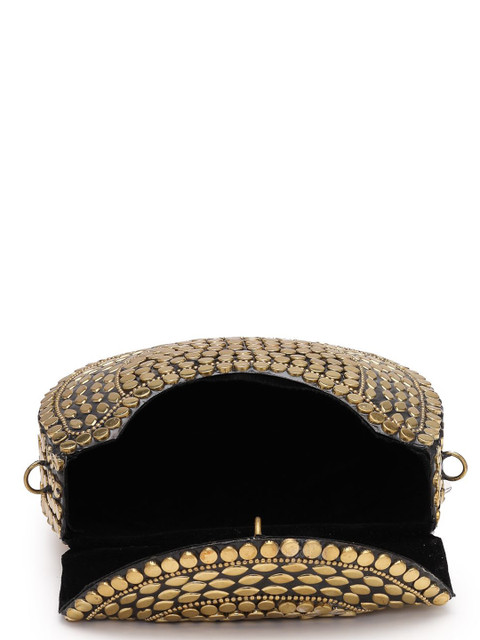 Metallic Gold embellished half moon clutches