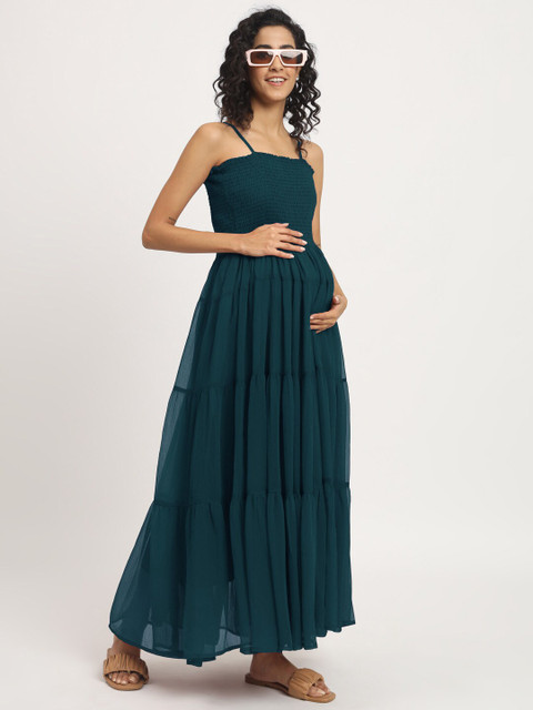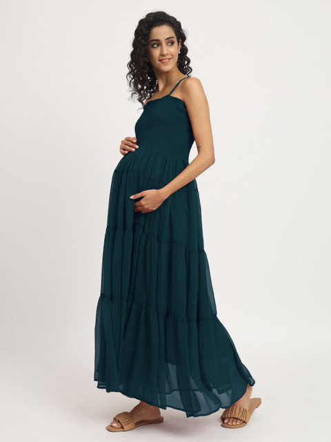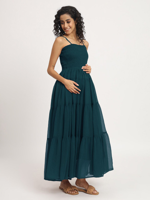 - Teal solid maxi dress