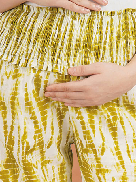 You’d expect the smoked detail to stretch and accommodate your belly, since it’s a pregnancy pant, it absolutely doesn’t do much. Has no room. I ordered the red one, which was satin while other prints were in cotton.