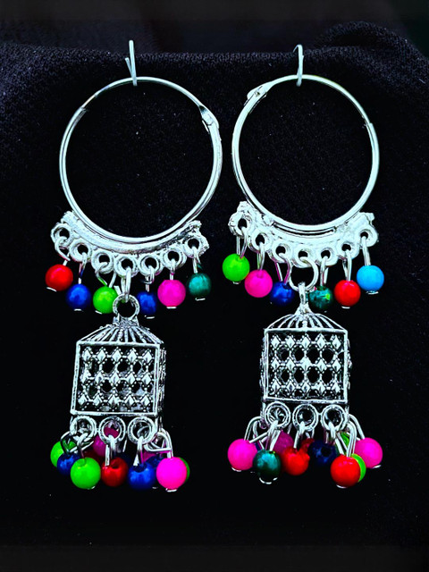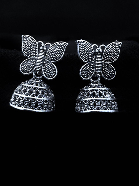 ANNORA INTERNATIONAL Women Pack of 6 Silver Plated Oxidised Jhumkas Earrings