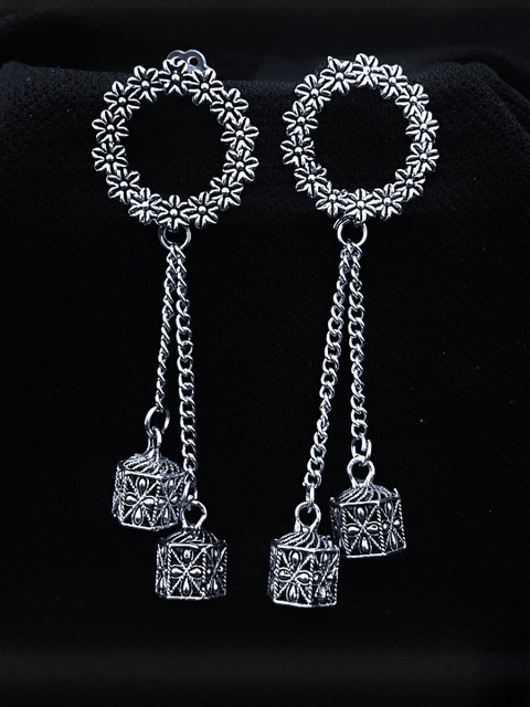 ANNORA INTERNATIONAL Women Silver Pair Of 6 Silver-Plated Floral Jhumka Oxidized Earrings
