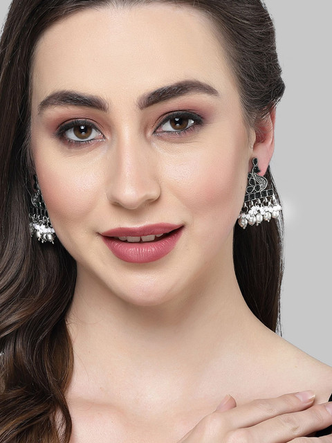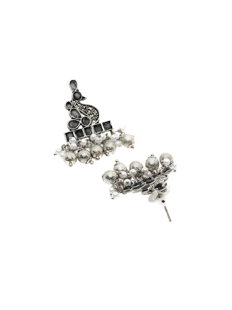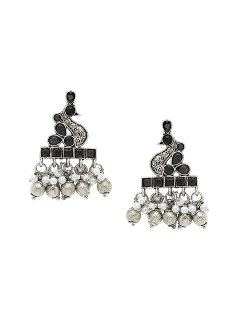 Black contemporary studs, silver-plated, has kundan