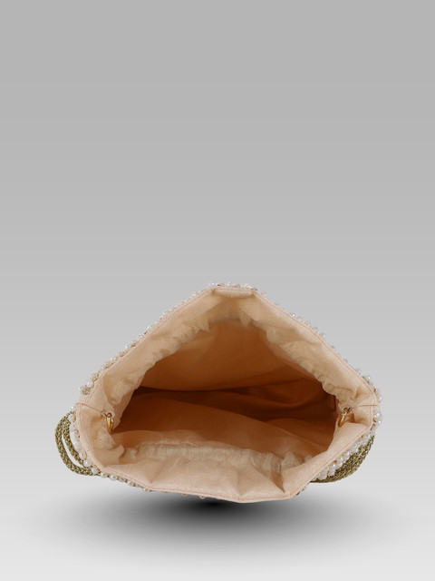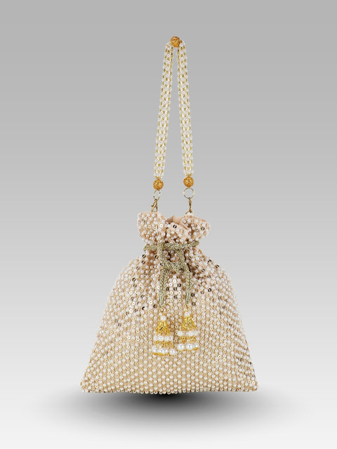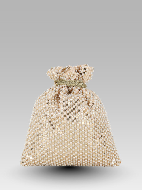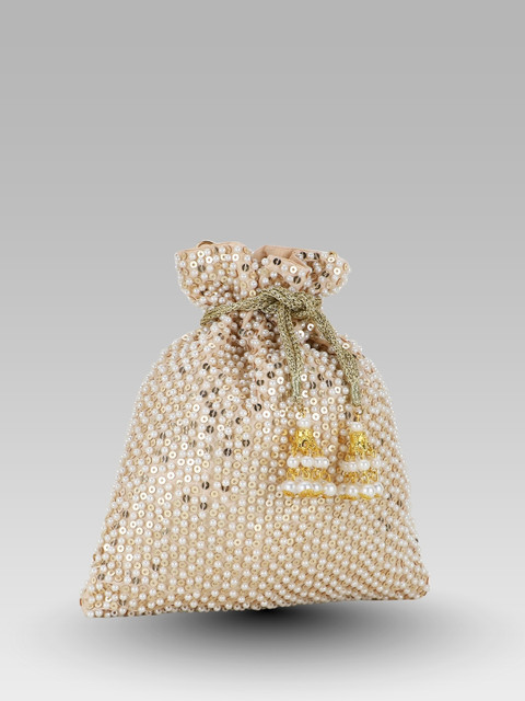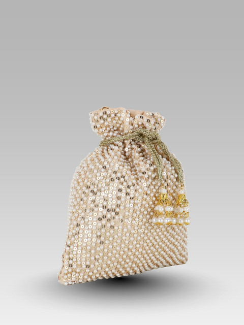 Cream-coloured embellished tasselled potli clutches