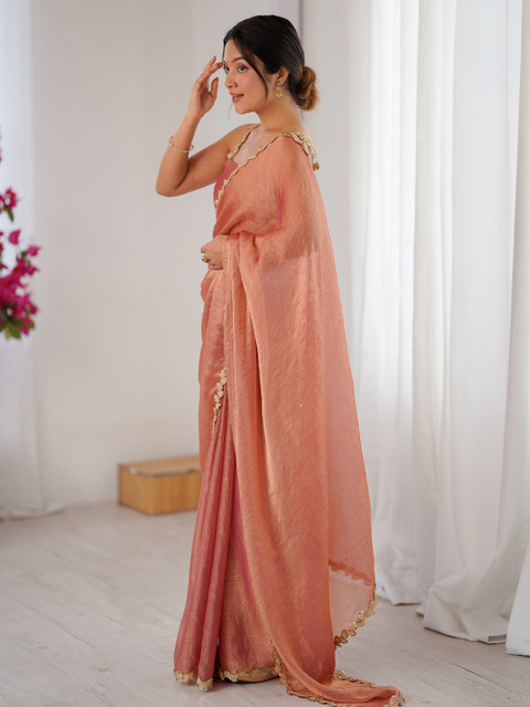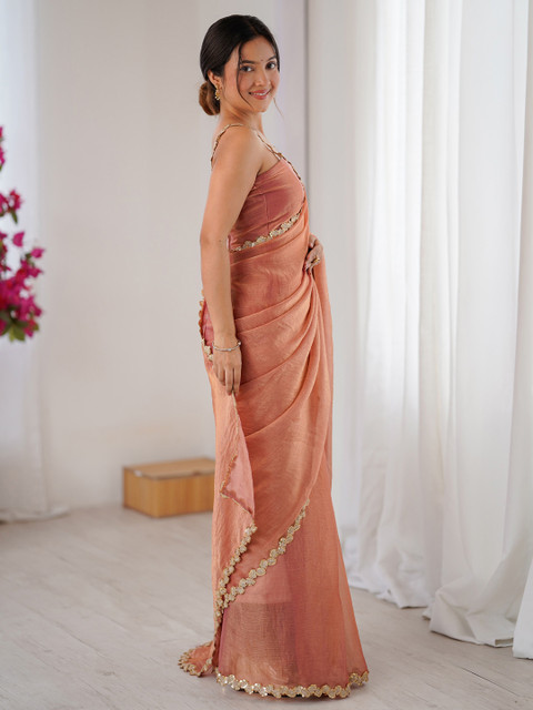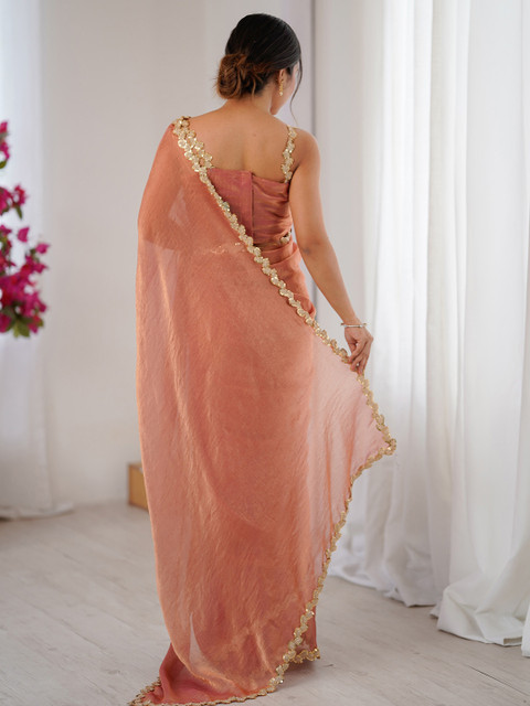 The blouse worn by the model might be for modelling purpose only. Check the image of the blouse piece to understand how the actual blouse piece looks like.