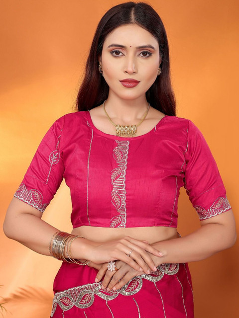 The blouse worn by the model might be for modelling purpose only. Check the image of the blouse piece to understand how the actual blouse piece looks like.