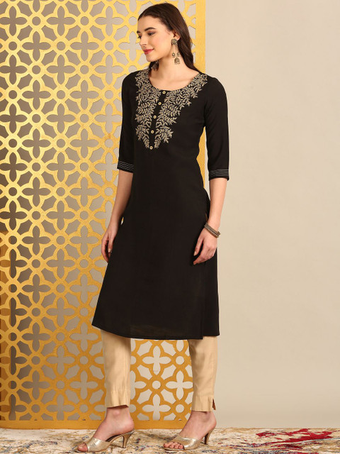 Anouk Embroidered Thread Work Round Neck Straight Kurta