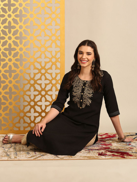 6 reviews for Anouk Embroidered Thread Work Round Neck Straight Kurta