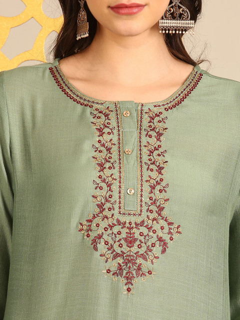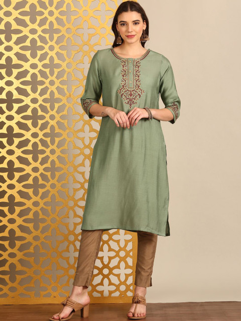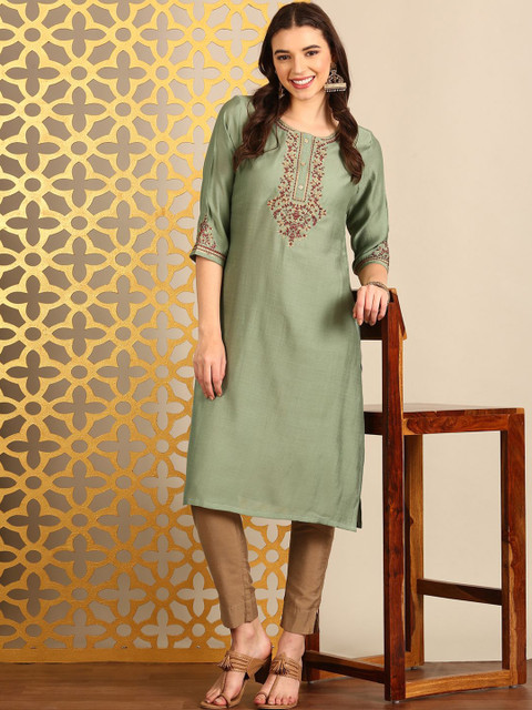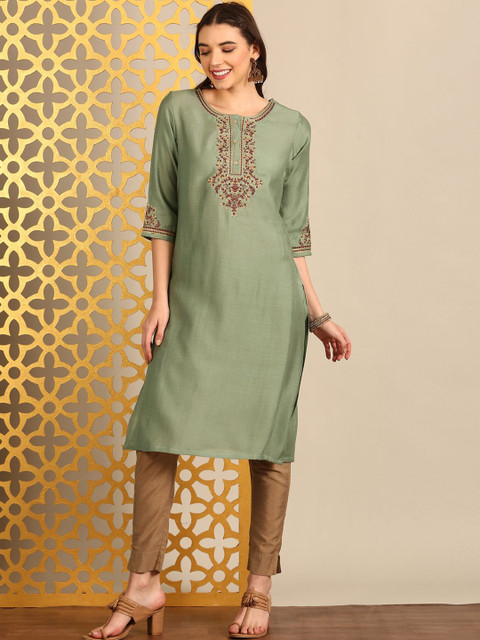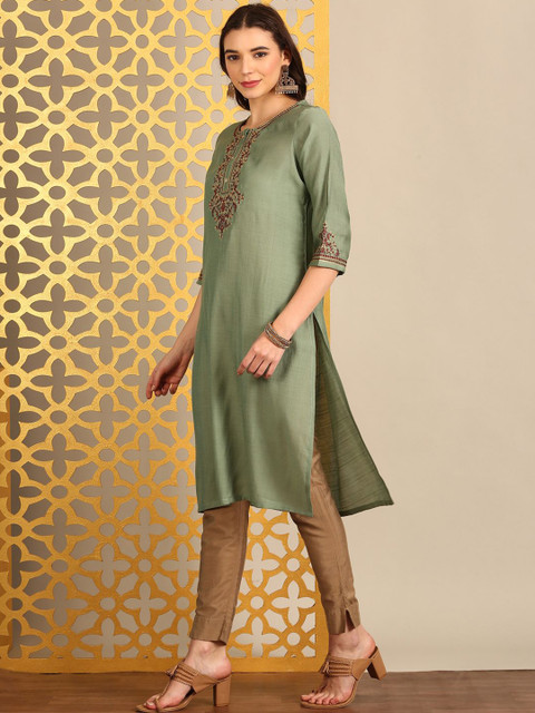 3 reviews for Anouk Embroidered Thread Work Round Neck Straight Kurta