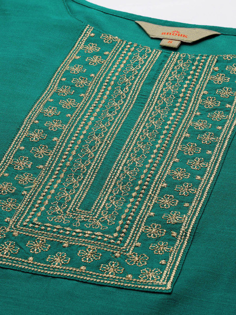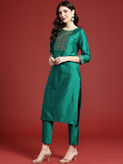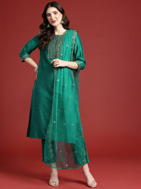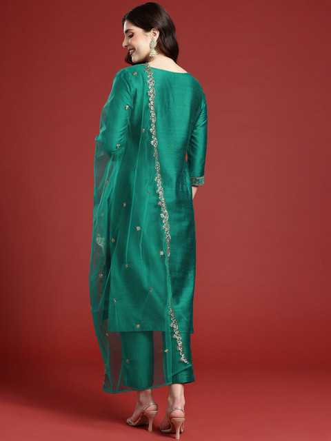 Green embroidered Kurta with Trousers with dupatta