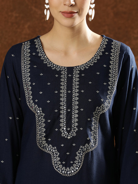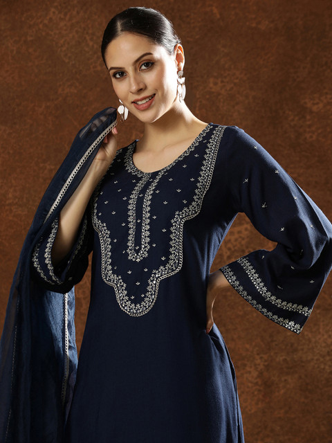 Navy blue embroidered kurta with trousers & dupatta