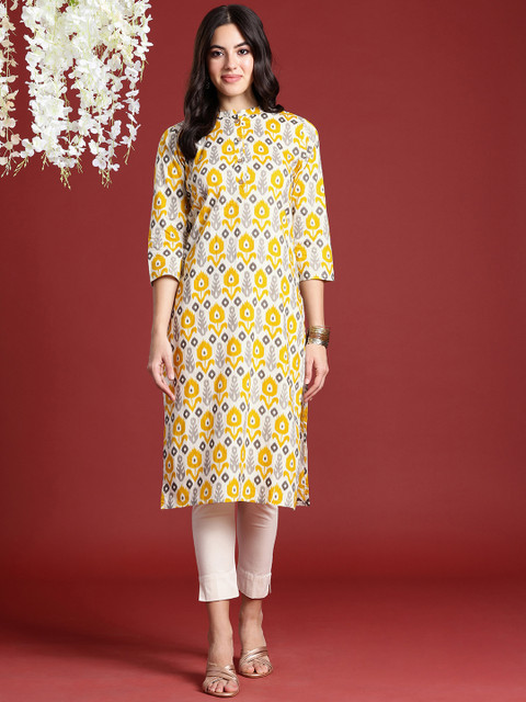 Comfortable and elegant, this Anouk ikat-dyed cotton kurta is perfect for everyday or office wear.