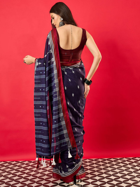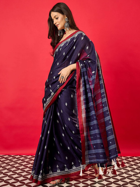 • Ethnic motifs printed saree with woven design border border