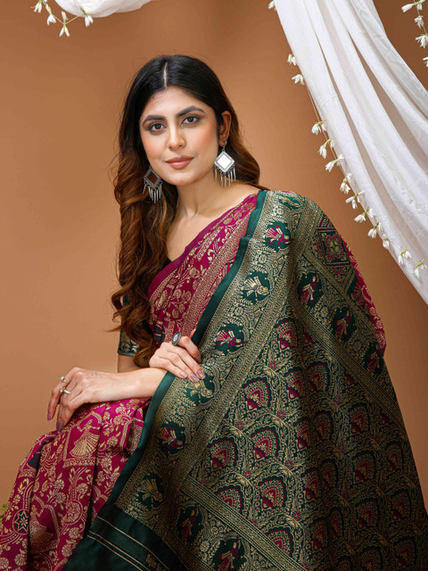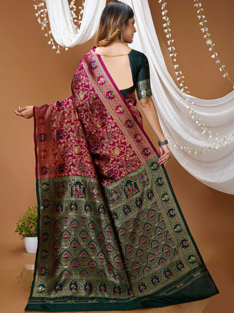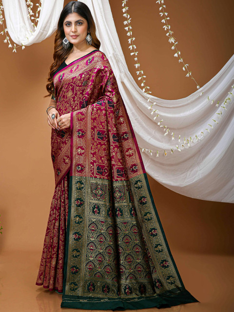 - Ethnic motifs woven design saree with zari border border