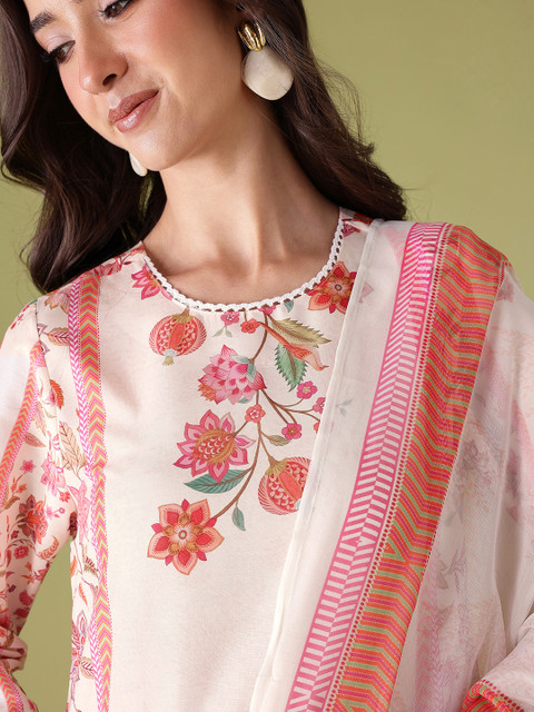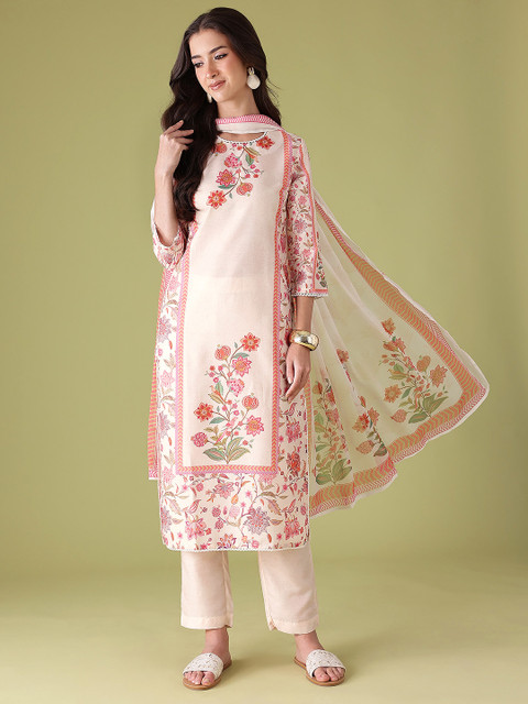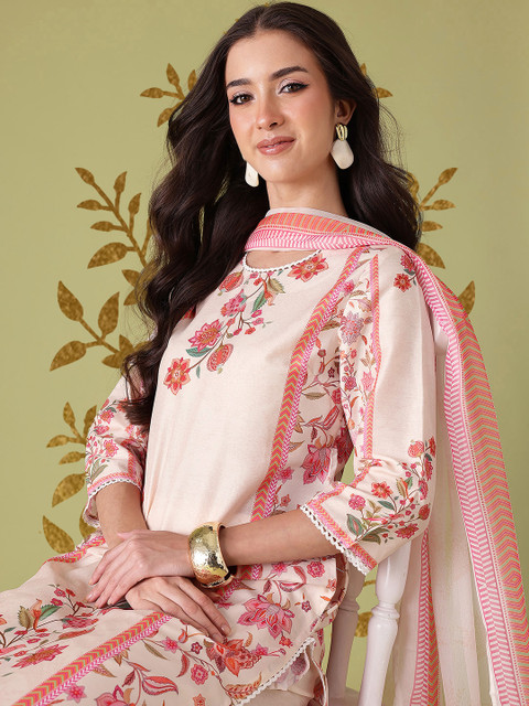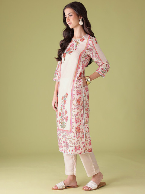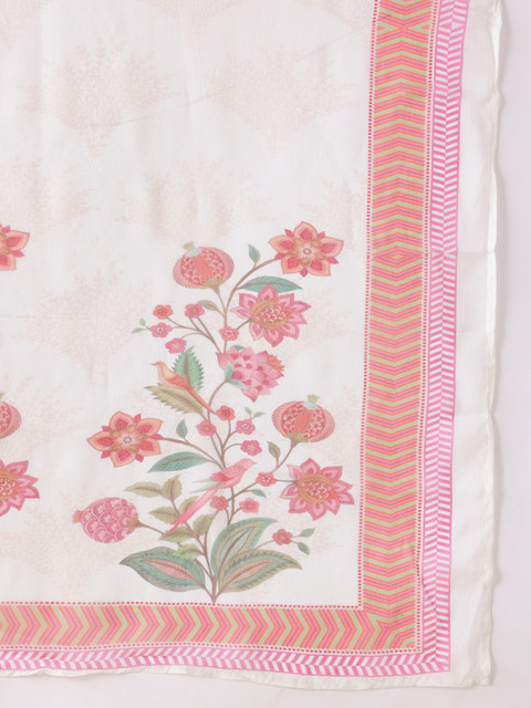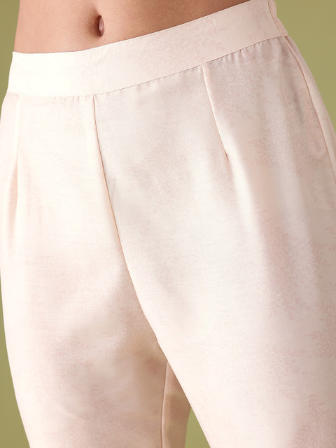 Beige and Pink printed Kurta with Trousers with dupatta