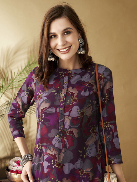 “The Anouk floral printed band collar kurti is stylish and comfortable. Its vibrant print and soft fabric make it perfect for casual and festive wear!”