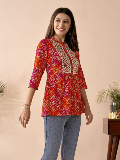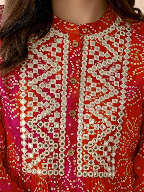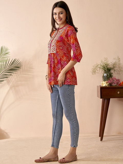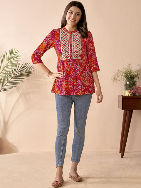 Beautiful mirror work kurti .Comfortable material and vibrant colour .can be paired with jeans .
