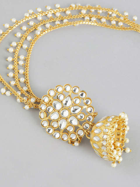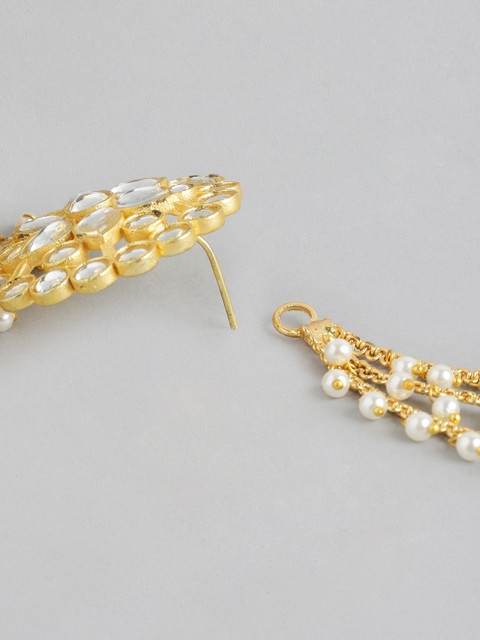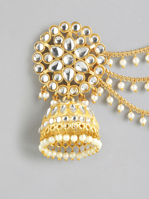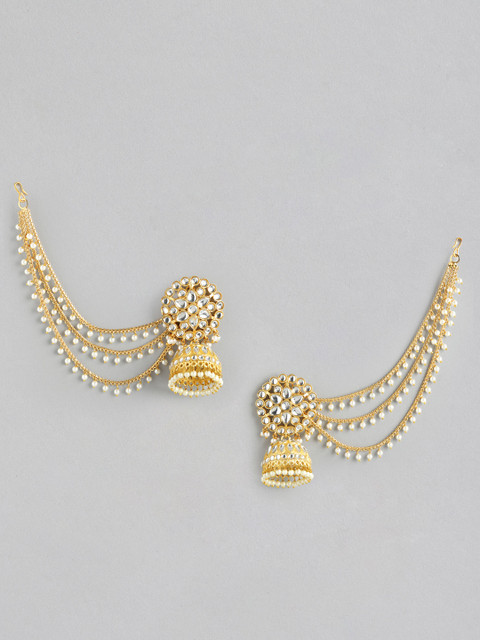 Gold-toned contemporary jhumkas, gold-plated, has artificial stones and beads