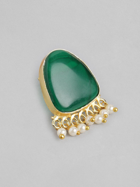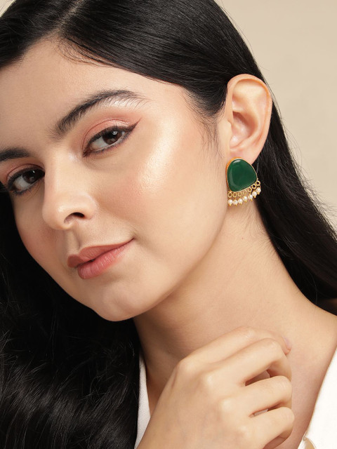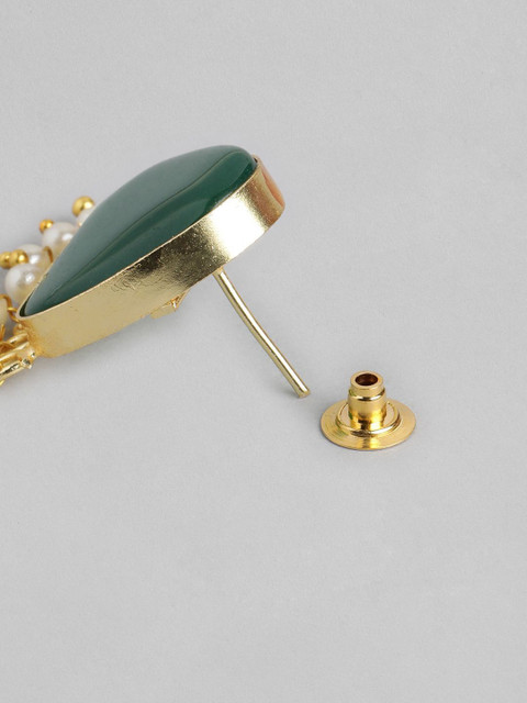 Gold toned -Green geometric studs, has artificial stone studded & beads details