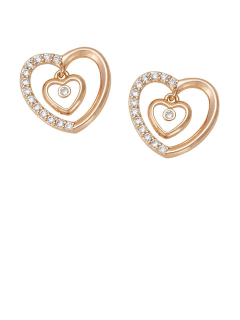 Gold-toned and white heart shaped studs, has artificial stones studded details