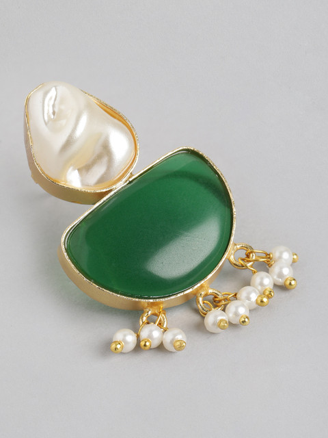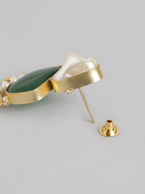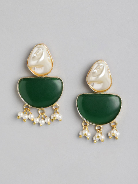 Green and gold-toned geometric drop earrings, gold-plated, has artificial beads