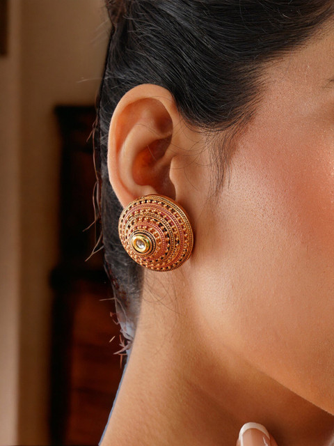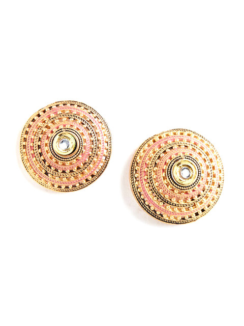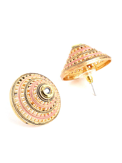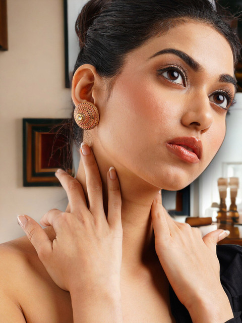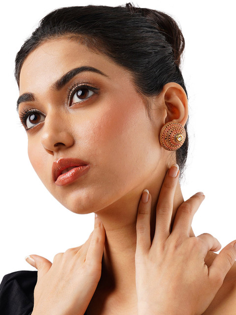 Gold-toned teardrop shaped studs, gold-plated, has artificial stones and beads