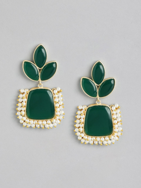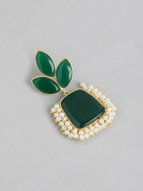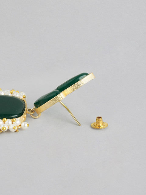Green and gold-toned classic drop earrings, gold-plated, has artificial beads