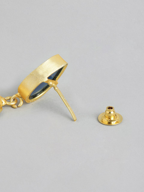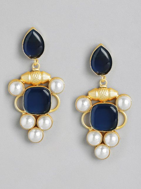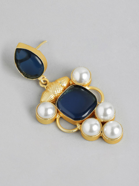 Blue and gold-toned contemporary drop earrings, gold-plated, has mother of pearl